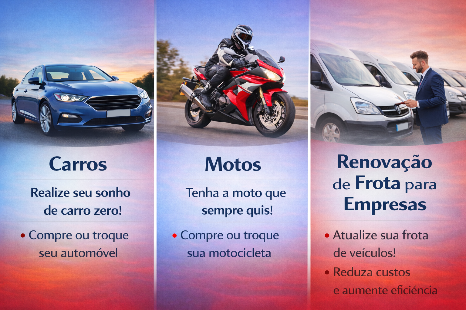 Carros, motos e renovação de frota para empresas.
