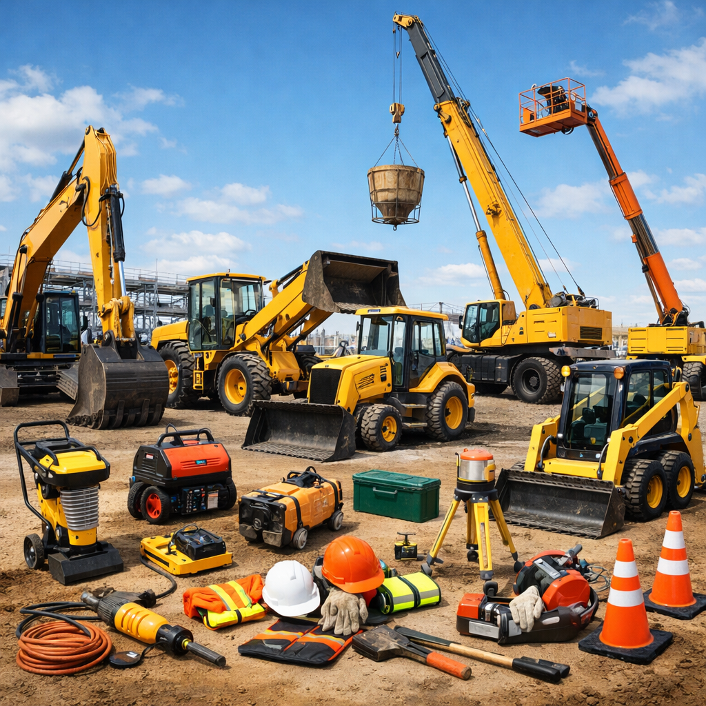 Equipamentos agrícolas, industriais e caminhões.