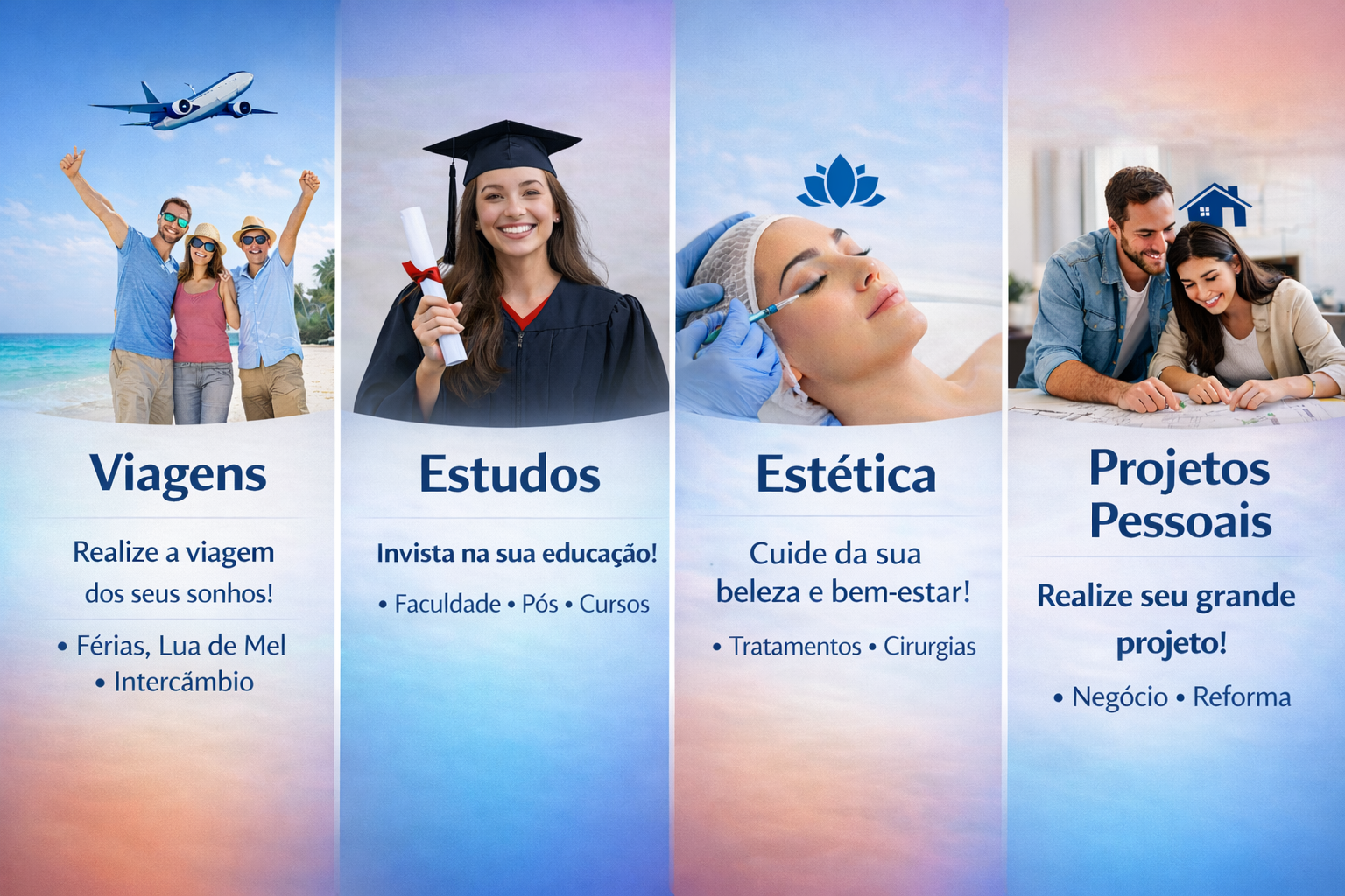 Viagens, estudos, estética ou projetos pessoais.